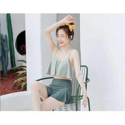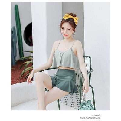 水着2点セット レディース 体型カバー 水着 セパレート キュロット ビキニセット小胸バンドゥ オシャレ韓国風 可愛いセクシー スイムウェア ママ水着 温泉 ミセス ママ水着 スイムウェア みずぎ