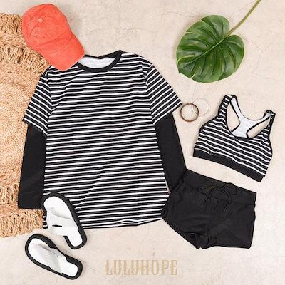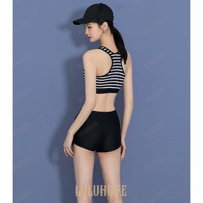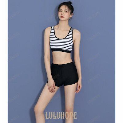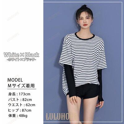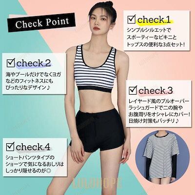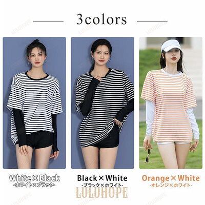 水着 レディース トップス付き 3点セット セパレート ラッシュガード 体型カバー ボーダー おしゃれ かわいい