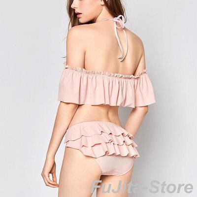 水着 上下セット 2点セット セパレート レディース スイムウェア オフショル フレアビキニ ホルターネック フリル 無地 シンプル ティア ド 体系