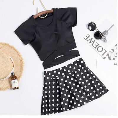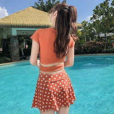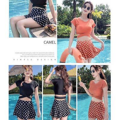水着レディースセパレートビキニ2点セット体型カバービスチェ風ハイウエスト水着韓国風ギンガム水玉柄スイムウェア20代30代40代女性用