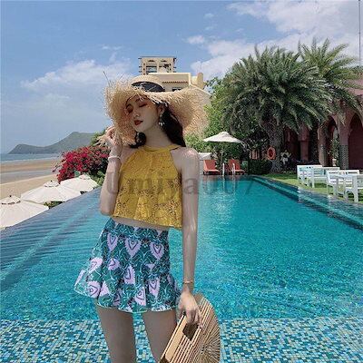 水着 レディース 体型カバー 2点セット ビキニ 上下セット パッド付き 小胸 盛れる 温泉 プール 海 夏 ママ水着 UVカット 紫外線対策 海水浴