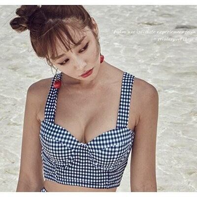 レディース水着上下セットビキニギンガムチェック柄可愛い海水泳大きいサイズプール女性ハイウエスト高校生女の子夏