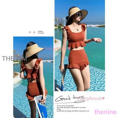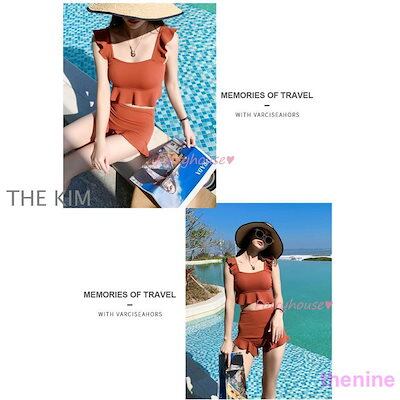 ビキニ水着レディース 夏 ビキニ2点セット水着 体型カバー 韓国風 ハイウエスト 黒フレア ショットパンツ 水着 小胸バンドゥビキニセパレート 40代