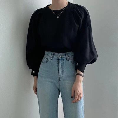 Tシャツカットソー 韓国/シック/フレンチ/シンプル/ラウンドネック/バブルスリーブ/シャツ/女性/気質/汎用性/シャツ ブラウス 福袋 T