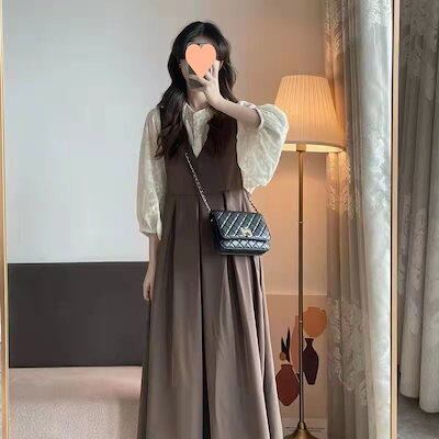 ツーピース/新作/セット/フード付き/レースブラウス+サロペットスカート/ロングスカート/ツーピース ワイシャツ ワンピース キャミソールワンピース ミディアムスリーブ トップス 刺繍 福袋 T
