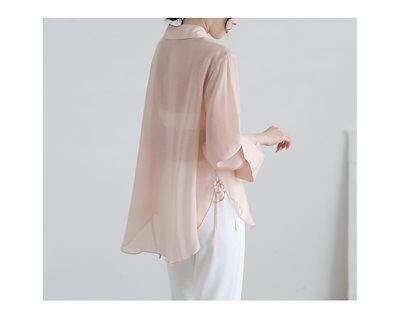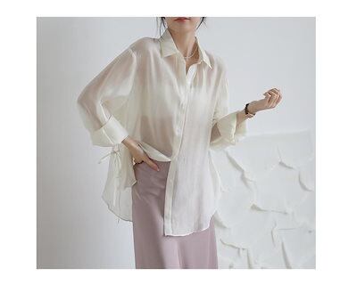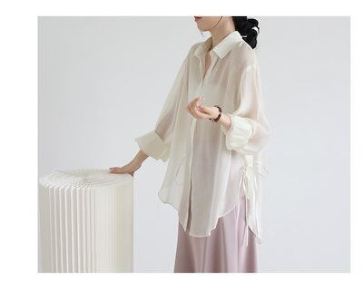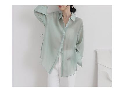 夏 UVカット 紫外線対策 冷感 シアーシャツ トップス 韓国ファッション シャツ レディース ロングシャツ シースルーシャツ 長袖tシャツ ブラウス 福袋 T