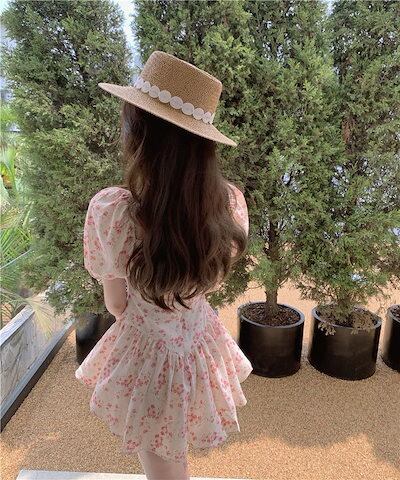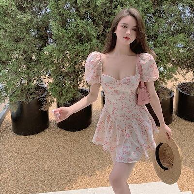 今年の流行 水着 オールインワン水着 スカート ラッフル さいころ セクシー バブル袖 ハイウエスト 着痩せ 乙女の風 保守 温泉水着 福袋 T