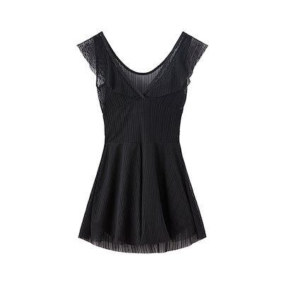 2025 春夏 水着 体型カバー 水着 ワンピース型 ショートパンツサロペット水着 黒レース フレア バンドゥ 水着 40代 大きいサイズ セクシー ママ水着 旅行 水着 レディース 体型カバー