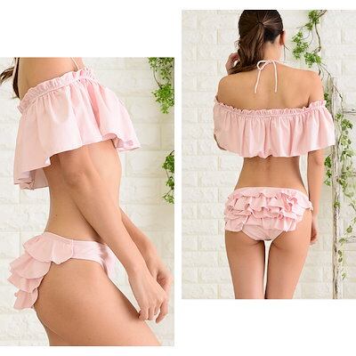 【即納】 水着 水着セット無地スイムウエア水着セットビキニタンキニパンツスカート体型カバーリボンワンピースフリル大きい大人用女性ママ用海プールボーダースポーツウエアレディース