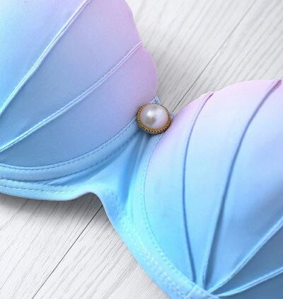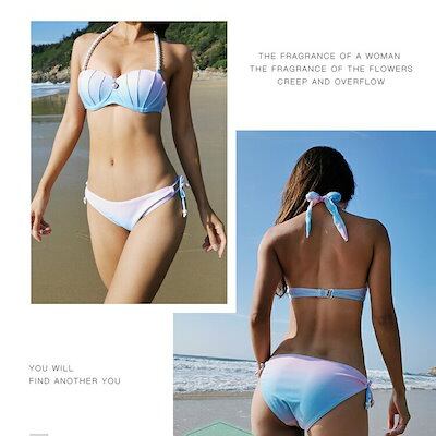 水着 レディース ビキニ セパレート 2点上下セット セクシー シェル 貝殻型 グラデーション色 三角ビキニ ブラ ショーツ パールつき 人工真珠 ビーチリゾート 大きいサイズ 小胸 バストアップ ワ
