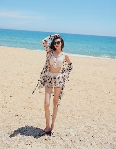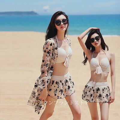 水着 レディース ビキニ セパレート タンキニ 長袖 ラッシュガード 3点セット 体型カバー セクシー ビーチリゾート 水着の上に着る カーディガン 大きいサイズ スカート型 小胸 ワイヤー入り スト