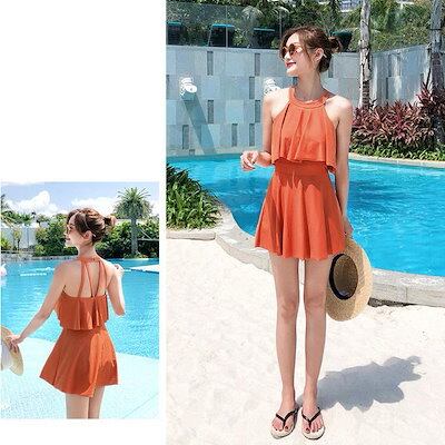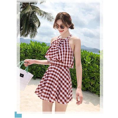 水着レディース 体型カバー 水着 ワンピース型 ショートパンツサロペット水着 チェック柄 フレア 水着 韓国風 40代 大きいサイズ 可愛い スイムウェア ママ水着3404