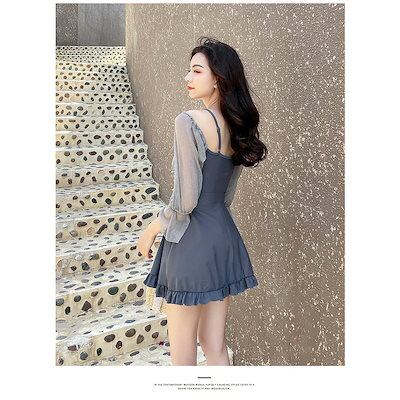 水着 レディース 体型カバー 水着ワンピース型 サロペット水着 長袖 UVカット 肩出し 小胸バンドゥ オシャレ可愛い スイムウェア 学生 ラッシュガード ビーチ