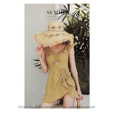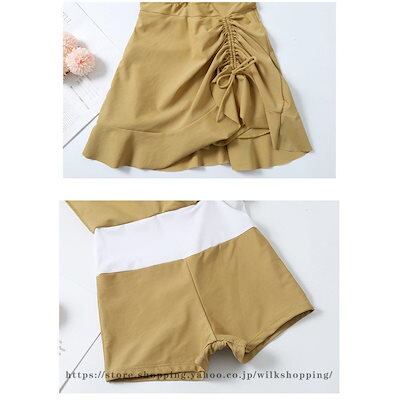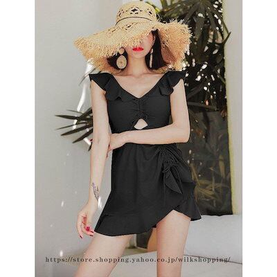 水着レディース 体型カバー 水着 ワンピース ショートパンツサロペット水着 フレア バンドゥ 水着 韓国風 40代 20代 30代 黒 イー