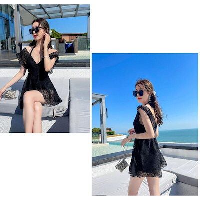 【Primepic】【急速出荷】水着 レディース 体型カバー ワンピースレース オールインワン ショットパンツ 小胸バンドゥ オシャレ韓国風 着痩せ スイムウェア