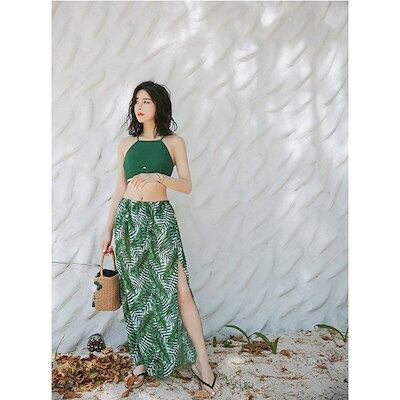 今だけ圧倒的販売 水着レディース体型カバービキニバンドゥハイネック3点セットエスニック柄無地ロングスカートパレオ30代40代50代セパレートオトナ女子リゾート