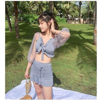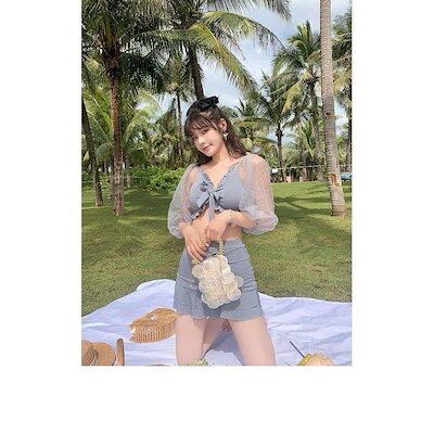 水着 レディース 2点セット 小胸 バンドゥ 水着セット ビキニ パレオ 大きいサイズ リゾート パッド付き 韓国風 体型カバー 日焼け防止 代 30代 40代 50代