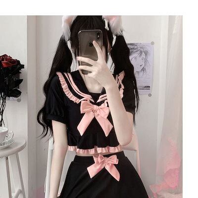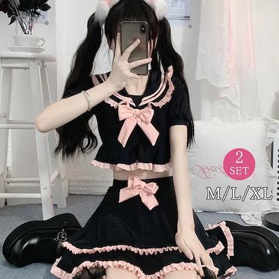 プール レディース 地雷系 バンドゥ 半袖 量産型 海 タンキニ 水遊び スイムウエア 大人可愛い ビーチ 上下セット セパレート リボン リゾート 水陸両用 ブラック 20代 フレアスカート みずぎ