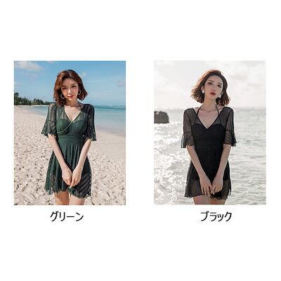 水着 レディース 体型カバー 水着ワンピース型 サロベット水着 半袖 黒レース ショットパンツ 小胸バンドゥ 40代 オシャレ韓国風 スポーツ スイムウェア ママ 無地 かわいい バックシャン おしゃ