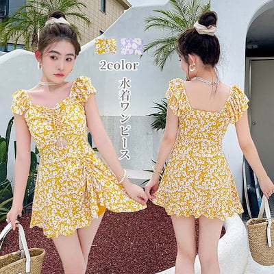 水着 ワンピース「S/M/L/XL」体型カバー水着 ミセス ママ水着 スイムウェア みずぎ ミズギ ぽっちゃり ファッション 夏春 パープル/イエロー/ブルー レディース 体型カバー水着 小胸バンドゥ