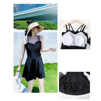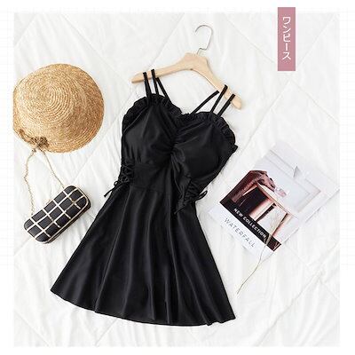水着 レディース 体型カバー 水着ワンピース型 サロベット水着 黒リボン ショットパンツ 小胸バンドゥ オシャレ韓国風 着痩せ スイムウェア ママ水着 学生 みずぎ 新入荷 キレイめ 韓国風 お洒落