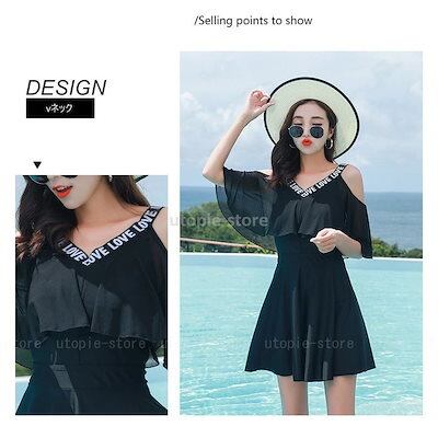水着レディース 体型カバー 水着 ワンピース型 セパレート小胸バンドゥ 水着2点セット 肩出し