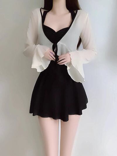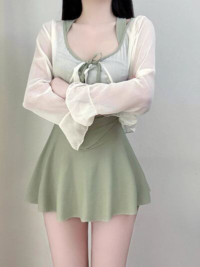 水着 韓国ファッションの水着 レディース 温泉 休暇 胸が小さい ギャザー シャム結合体 ビキニ 高級感 スカートタイプ 少女 ブラック グリーン 2色 水着