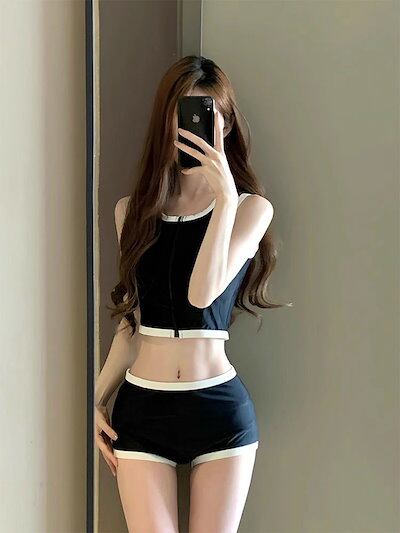水着 韓国ファッションの水着 2025 サマー 新しい 分体 学生 運動 保守的 スイムウェア 胸が小さい ギャザー ハイウエスト 温泉 レディース 水着