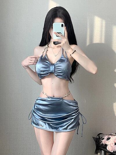 水着 韓国ファッションの水着 休暇 写真を撮り レディース 分体 ファッション ビキニ 3点セット 純欲風 首をかける セクシー 小さな胸 ギャザー 温泉 スイムウェア