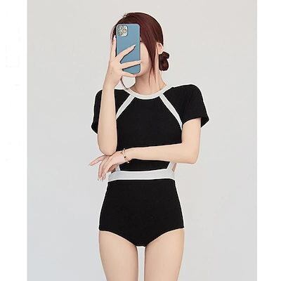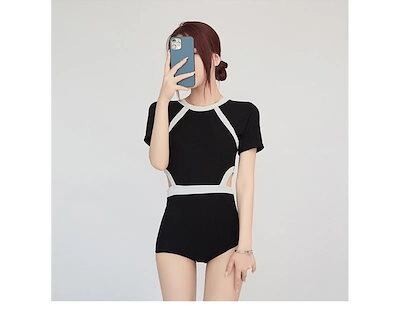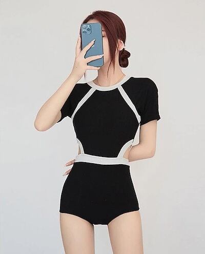 水着 韓国ファッションの水着 学生 カジュアル 腰をだす 温泉につかり ブラック スイムウェア 着痩せ 小さな胸 ギャザー レディース 休暇 水着