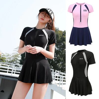 2025夏新作 激安水着 レディース ビキニ 着痩せ 可愛い 半袖 かわいい UVカット ワンピース水着 体型カバー 韓国ファッション 温泉 保守水着 美脚 紫外線対策