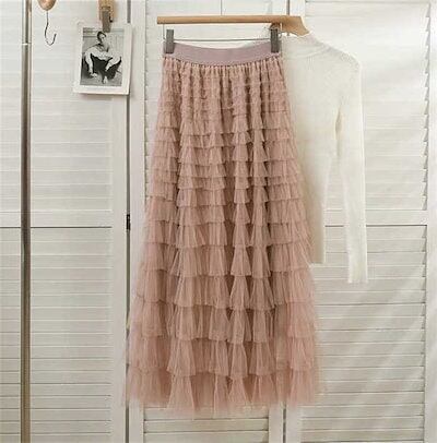 ティアード スカート レディース ティアードスカート チュール フレア フレアスカート ロング ボトムス ギャザー ミモレ丈 フレア ウエストゴム 無地 通勤 ロング ロングスカート 着痩せ チュール