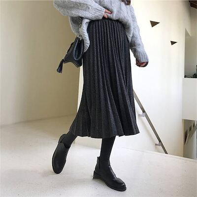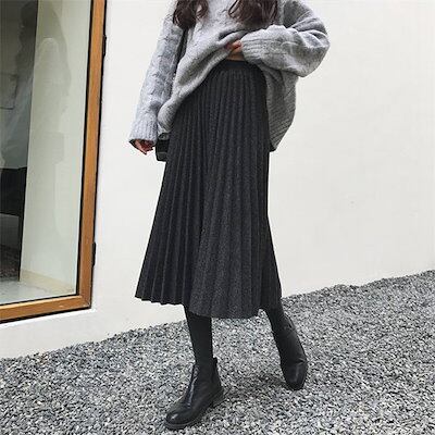 プリーツスカート スカート ロング 無地 Aライン レディース ボトムス 厚手 ミモレ丈スカート ロング丈 ロングスカート 秋冬 ウエストゴム aライン 大きいサイズ 体型カバー 着痩せ 通勤 OL