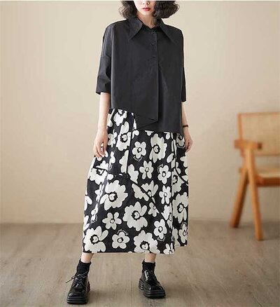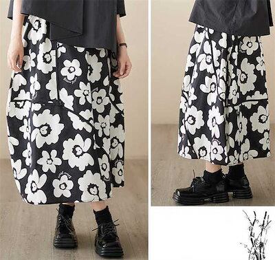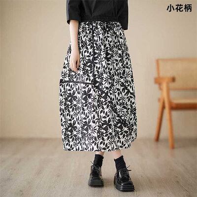 スカート ロングスカート レディース ボトムス Aライン 花柄 プリント アシンメトリー 新作 春 夏 ウエストゴム カジュアル エレガント ゆったり おしゃれ レトロ 大人 きれいめ 切り替え 着痩