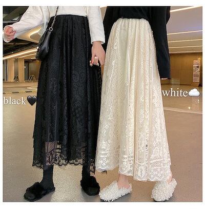 総レース スカート チュールスカート レース スカート レディース スカート ボトムス ロング丈 ロング スカート マキシ丈 Aライン aライン 春 秋 ウエストゴム チュール レーススカート ふんわ