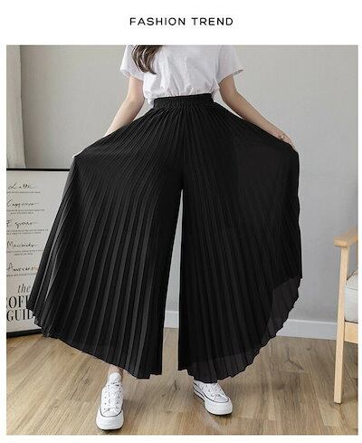 ワイドパンツ パンツ レディース シフォン シフォンスカート レデイース ロング丈 プリーツ プリーツスカート 春 夏 リラックス カジュアル ウエストゴム ゆったり 柔らかい 伸縮性 キュロットス