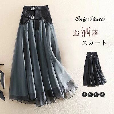 スカート チュール スカート レディース バイカラー スカート ボトムス ロング丈 ロングスカート マキシ丈 春 夏 秋 冬 ウエストゴム Aライン チュール ふんわり 大きいサイズ ボリューム