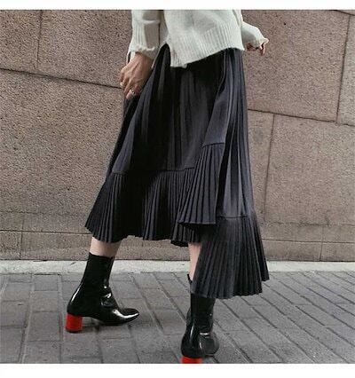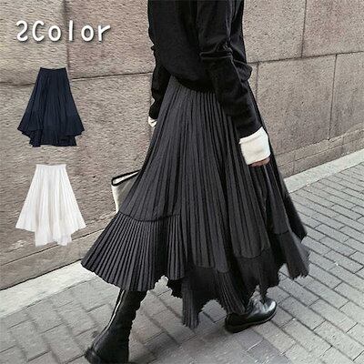 スカート ロング スカート プリーツ スカート 無地 レディース ボトムス ロング丈 ロングスカート 秋 冬 ウエストゴム ブリーツスカート 大きいサイズ 体型カバー 着痩せ 通勤 OL ミモレ丈 3
