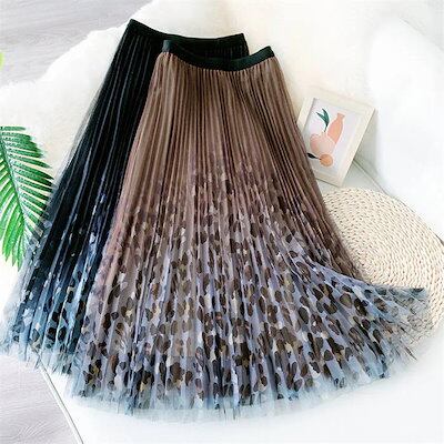 プリーツスカート ロング ロングスカート プリーツ フレアスカート ボトムス グラデーションスカート ヒョウ柄 スカート レディース フレア ロング丈 ミモレ丈 春夏秋 春 夏 秋 ウエストゴム シン