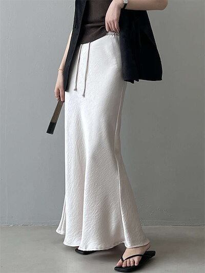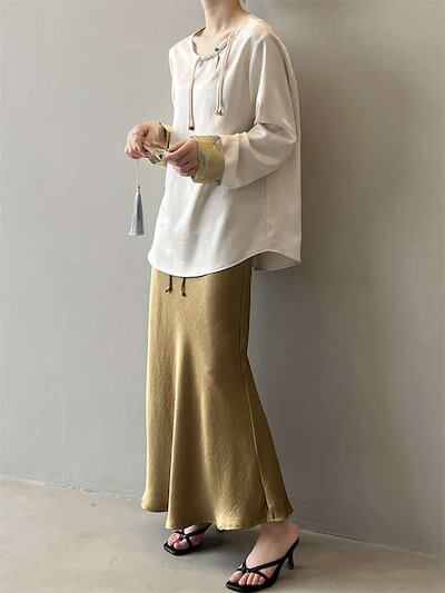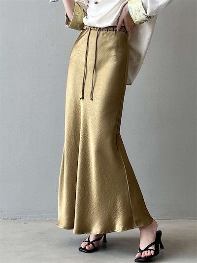 スカート サテン ロング レディース ボトムス マーメイドスカート フレアスカート マーメイド ひざ下 ロングスカート ロング丈 ミモレ丈 きれいめ ハイウェスト インナー 光沢感 上品 トレンド カ