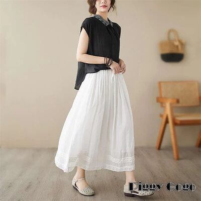 スカート レディース 綿麻 ボトムス コットンリネン 春 夏 秋 無地 裏地付き ウエストゴム Aライン ロング丈 ペチコート フレア 体型カバー 綿麻スカートスカート レディース 綿麻 ボトムス コ