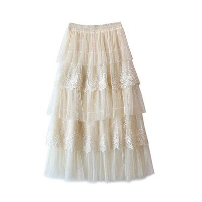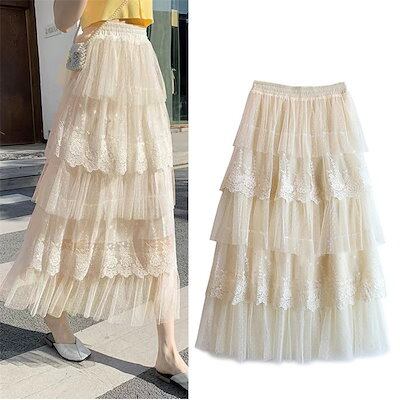 ロングスカート ティアードスカート レディース Aラインスカート 春 夏 ふんわり 美脚 着痩せ 花柄 フリル ボリューム シンプル ウエストゴム 軽量 おしゃれ チュール フレア ボトム