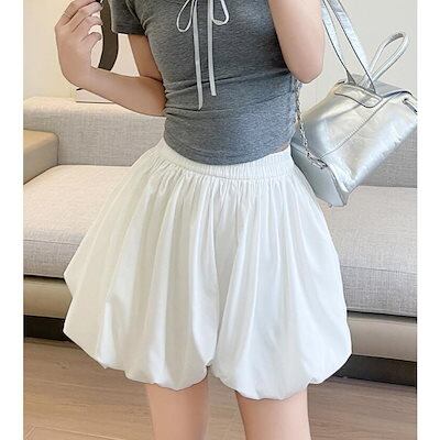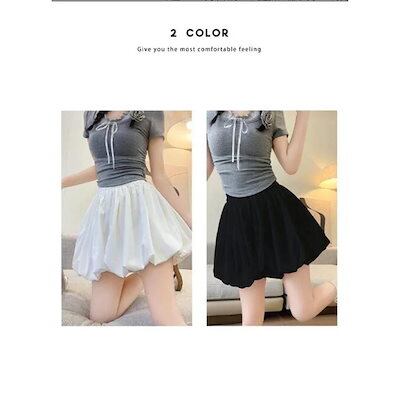 スカート ミニスカート レディース バルーンスカート 夏 レディース ウエストゴム バルーンミニスカート 韓国風 ホワイト ブラック