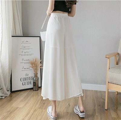 キュロットスカート パンツ レディース 春夏 ワイドパンツ シフォン 九分丈 シフォンスカート プリーツ プリーツスカート リラックス ウエストゴム カジュアル ゆったり 柔らかい 伸縮性 無地 体型