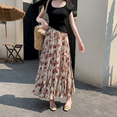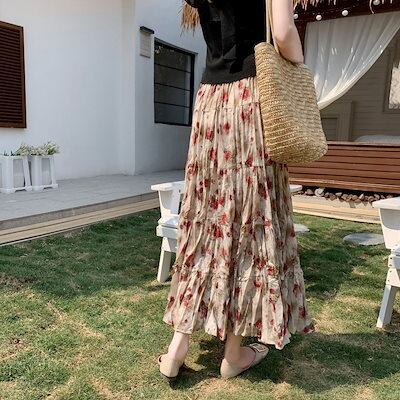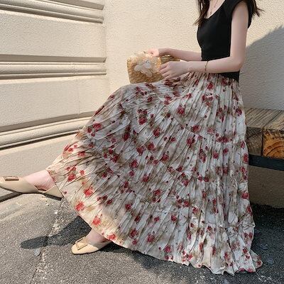 スカート ロングスカート フレアスカート ロング丈 レディース ボトムス 花柄フレアスカート ミモレ丈 フレア Aライン ハイウエスト ウエストゴム 透け感 きれいめ 大人 上品 おしゃれ 大人可愛い