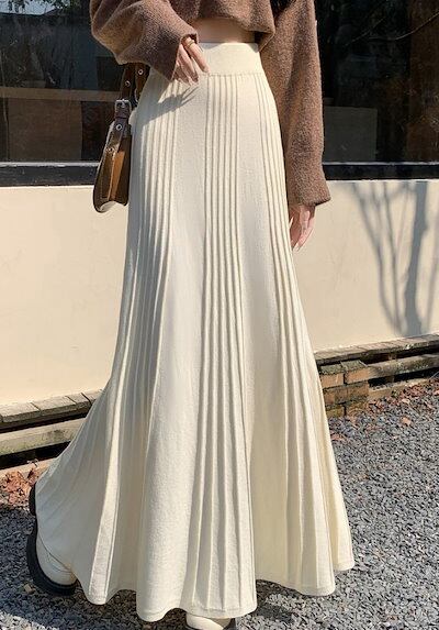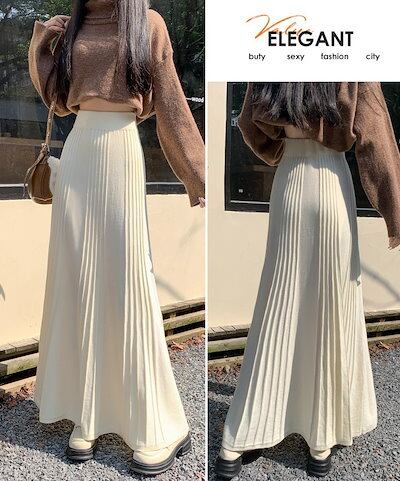 スカート ニットスカート プリーツスカート レディース ロングニットスカート フレアスカート ロング マキシ丈 ハイウエスト リブ ウエストゴム ニット 厚手 きれいめ 大人 おしゃれ 大人女子