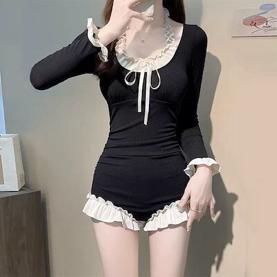 水着女性モデルワンピース長袖スリム肉カバー腹スパ水着