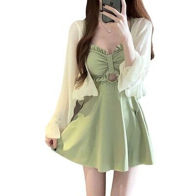 水着 レディース 24新作 ワンピース スリム コンサバ スカートスタイル アボカドグリーン セクシー温泉水着