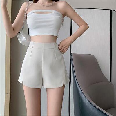 脚見せショートパンツ かっこいい!スラックスパンツ 大きいサイズ レディース ショートパンツ 女性 2025 夏 ゆったり 黒 ハイウエスト Aワード ワイドパンツ 薄手