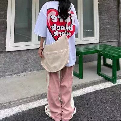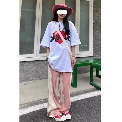 ワイドパンツ レディースパッチワーク生エッジジーンズワイドレッグストレートパンツドレープパンツ薄い女性 スラックス ハイウエスト